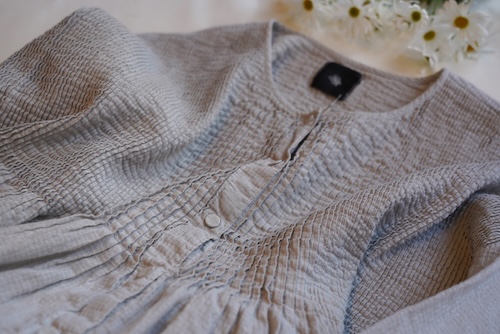 前後身頃に贅沢にあしらわれた繊細なピンタックは1本1本職人の手によって縫われ手仕事の温かみを感じることができるディテール