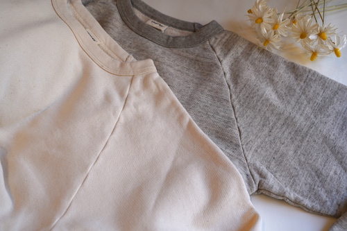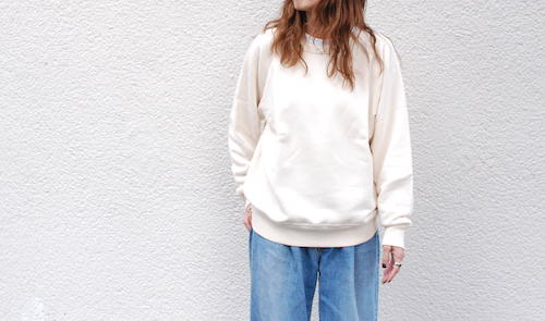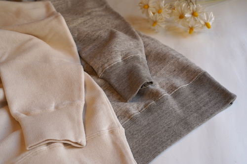 カリフォルニア産オーガニックコットンを使用し和歌山県で編み立てられた無染色の裏毛クルーネックプルオーバー