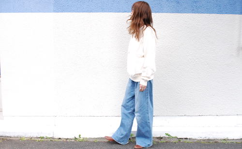 少し長めの袖が袖口でクシュっとする感じもこなれ感を演出しています