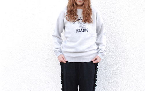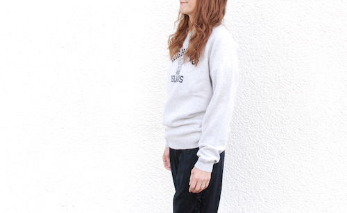 そのニットに別注したイラストプリントが可愛いラグランスリーブニット