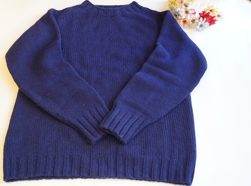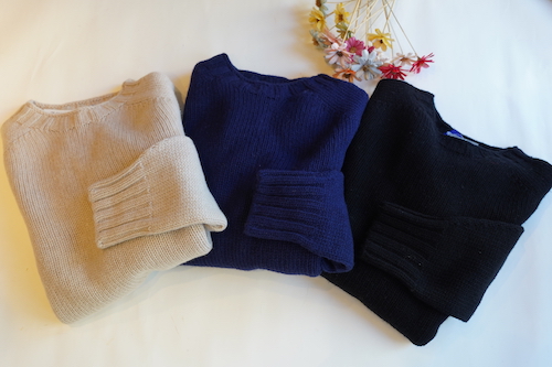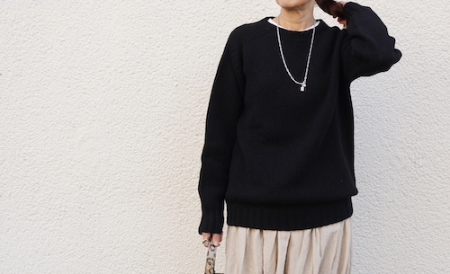 定番のクルーネックニットよりも太い糸2.5GGでざっくりと編まれたニットプルオーバー