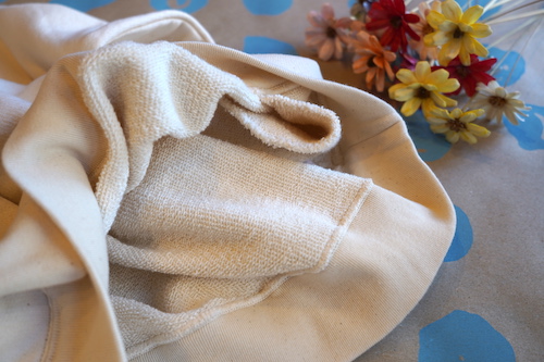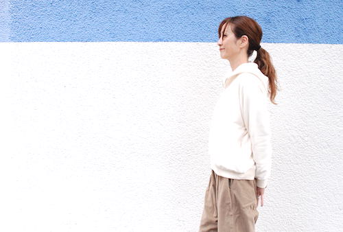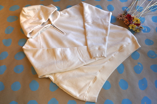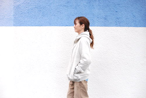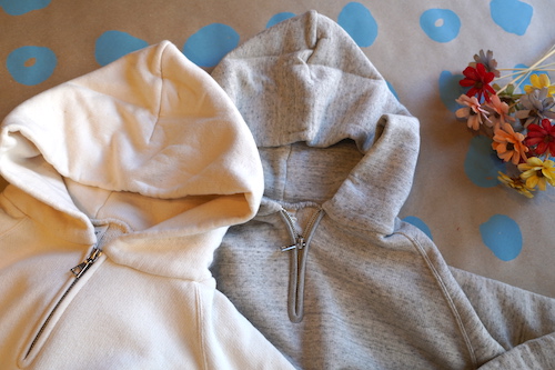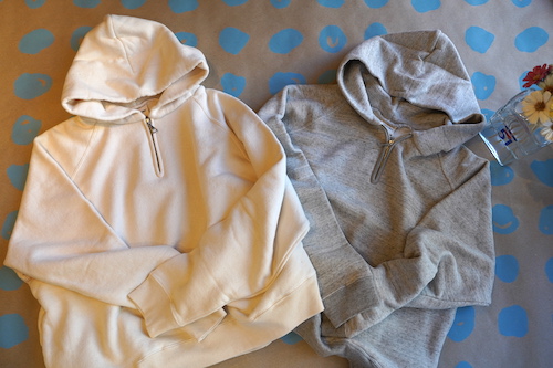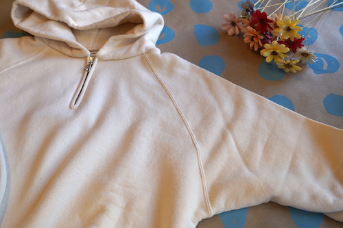 カリフォルニア産オーガニックコットンを使用し和歌山県で編み立てられた無染色の裏毛ハーフジップパーカ