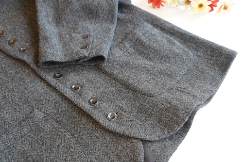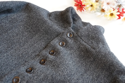 襟を開けても楽しめるようにずらりと並んだボタンが素敵です