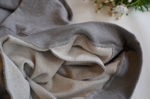 裏面がループ状(パイル状)になったスウェット素材でふんわりと柔らかな肌触りが特徴で軽さとソフトな風合いを兼ね備えています