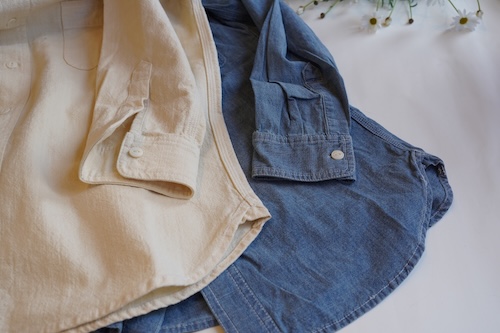 凹凸のあるシャンブレー生地は雰囲気が良く厚みも丁度いいです