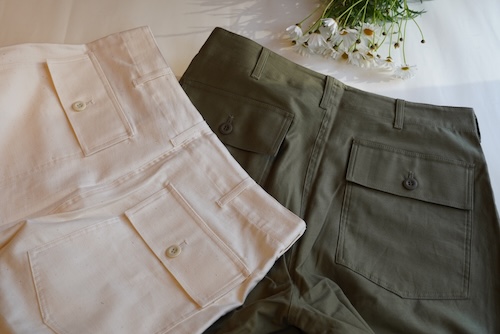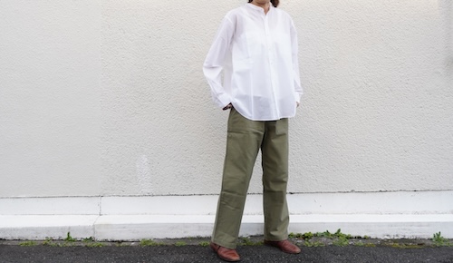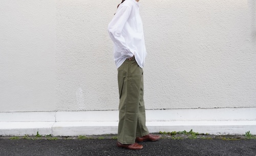フラップ付きのバックポケットなどワークな雰囲気は残しつつ少しテーパードした太めのシルエットやフロントジップ仕様などアップデートされたディテールは日常使いに活躍してくれます