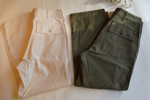 しっかりとした打ち込みでハリのあるバックサテン生地を使用したワーク感が漂うベイカーパンツです
