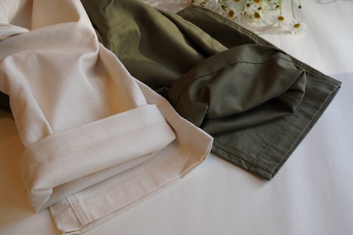 コットン素材のベーシックなデザインのパンツはオールシーズン活躍してくれます