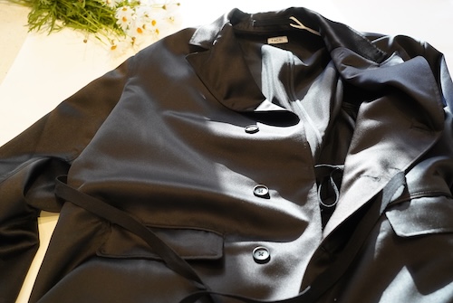 浴衣のように内側に合わせて結ぶ紐と外側にも絞れる紐がついているのでギュッと結んで違うシルエットにもできます(写真では紐を出していますが中に入れておくこともできます)